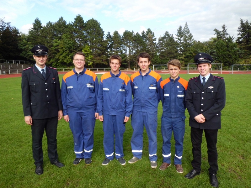 (Lehrte, 15.09.2013) Drei Gruppen der Gemeindejugendfeuerwehr Wedemark haben am Sonntag an der Abnahme der Leistungsspange in Lehrte teilgenommen. Die neunköpfigen Gruppen mussten sich in fünf Disziplinen beweisen. Nach der Schnelligkeitsübung, in der acht Schläuche richtig und ohne Drall verlegt werden mussten, bewältigten die Jugendlichen auch den Löschangriff nach FwDV 3. Nun musste die Gruppen gemeinsam Fragen aus den Themengebieten Organisation der Feuerwehr, persönliche Ausrüstung, Geräte, Löschmittel und Löschverfahren der Feuerwehr, Unfallverhütung und Gesellschafts- und Jugendpolitik beantworten, was ihnen ohne Probleme gelang.