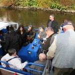 Weiter ging es nach Friedrichstadt. Dort fuhren wir eine Stunde durch die Grachten der Holländersiedlung, das „Venedig des Nordens“, zum Hafen und der Schleuse sowie auf der Treene – mit sachkundigen Erläuterungen zur Stadtgeschichte, den Sehenswürdigkeiten und der Treenelandschaft. Nach einer kurzen (Kaffee)-Pause übernahmen zwei Stadtführer die Führung und erzählten uns humorvoll die Geschichte und die Geschichten Friedrichstadts.