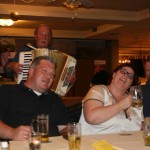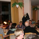 Auszüge aus unserer Speisekarte: Labskaus mit Bratei, Rullmops; Boddermelksupp und Klümp; Mehlbüddel mit Swiensback; Eiderstedter Rull mit stoovte Röben; Röhrei mit Porn und Blotwurst; Röckerte Swiensmors; Lamm; Burgunderbraten; viele Salate un barg anner Krom. Mit musikalischer Umrahmung von Fritz auf dem Schifferklavier endete der erste Tag.