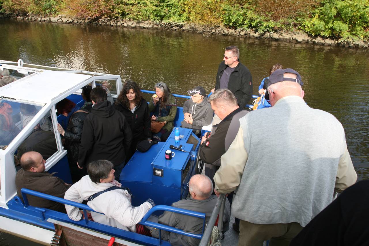 Weiter ging es nach Friedrichstadt. Dort fuhren wir eine Stunde durch die Grachten der Holländersiedlung, das „Venedig des Nordens“, zum Hafen und der Schleuse sowie auf der Treene – mit sachkundigen Erläuterungen zur Stadtgeschichte, den Sehenswürdigkeiten und der Treenelandschaft. Nach einer kurzen (Kaffee)-Pause übernahmen zwei Stadtführer die Führung und erzählten uns humorvoll die Geschichte und die Geschichten Friedrichstadts.
