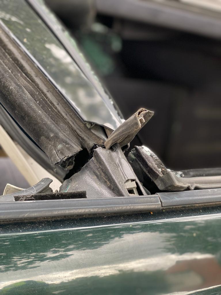 Wir begannen mit dem Glasmanagement. Die Fensterscheiben wurden abgeklebt, gekörnt und anschließend zerlegt. Danach war die Frontscheibe an der Reihe. Diese wurde mit dem Glasmaster, Dosenöffner und mit der Säbelsäge geöffnet. Um nun das Autodach zu entfernen, legten wir das Auto auf die Seite und sicherten es mit Leitern und dem STAB-Pack. Zum Schluss konnten wir uns am Herausschneiden der Türen mit dem hydraulischen Gerät austoben.